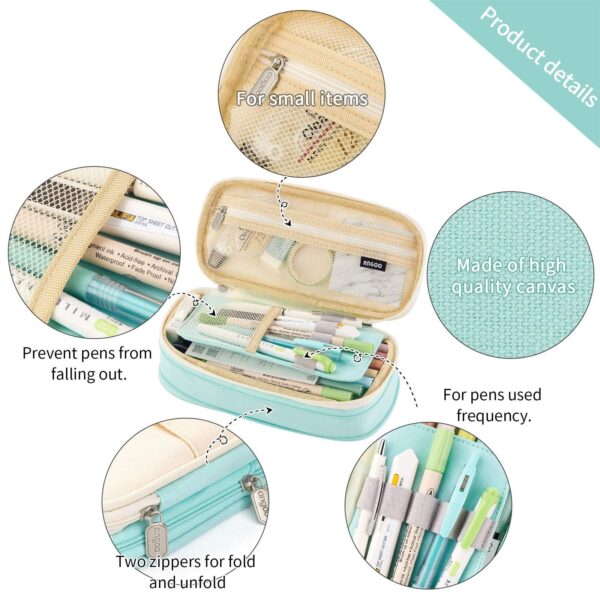 Main Features: 【Large capacity】Upgraded size 8.66 x 4.13 x 2.56 inches with large capacity storage, can store up to 50 pens or 100 pencils, and can store small stationery in the mesh bag, such as Rubber, Sticker, etc. In the middle of the small mezzanine, can put a few shorter pens that are often used. 【Deformable】1. Easy to carry around after folding, easy to store 2. Expand to get more pens. 【Fabric material】The unique design with high quality canvas, durable and superior. 【Original Design】After more than ten years of design and improvement, we hope that you like our company’s original products. 【As a Gift】It can also be given out as a gift for friends; and parents could give it to children as a birthday gift or Christmas gift.(Case only, pencils are not included)
