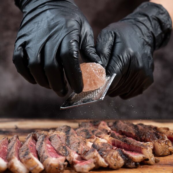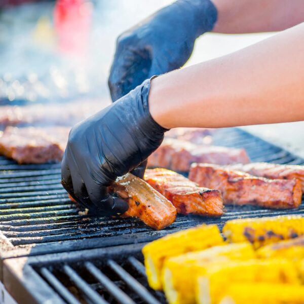The textured fingertips offer better grip and the rip and tear resistance means you won’t need to change gloves in middle of a job. Thin enough to work in, but thick enough for better protection, our gloves are ideal for cutting, chopping, peeling, and all other food needs. Perfect for household cleaning and janitorial supply. These gloves are latex free, which is vital for anyone with allergies to natural rubber latex. They are great as BBQ Gloves or for tattoo artists and hair stylists. Classic black, with an elegant box you’ll love to leave on your kitchen counter, office desk, or workstation.