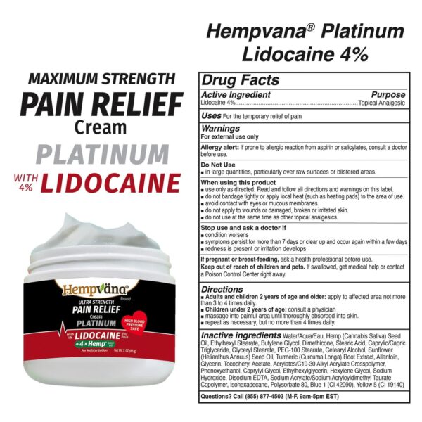 - HEMP SEED OIL: our Hempvana Platinum Lidocaine Pain Relief Cream is enriched with 4X the ultra-moisturizing Hemp Seed Oil