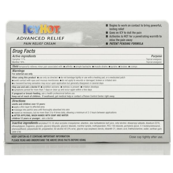 ICY HOT Advanced Pain Relief Cream 2 oz (Pack of 2)