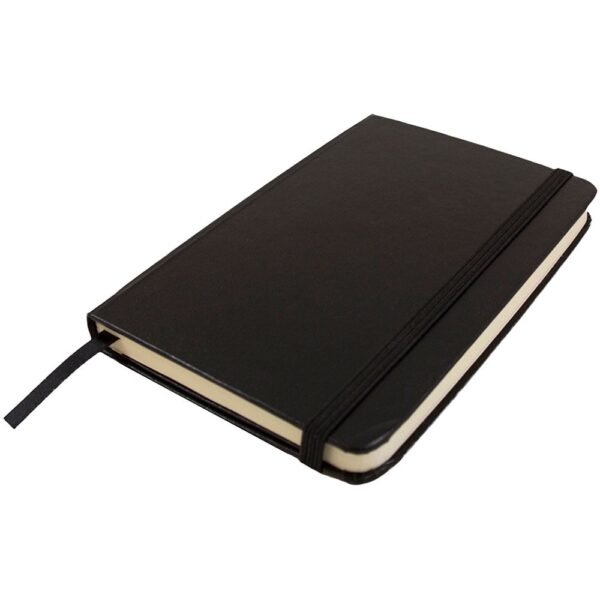 | Features | Black hardcover notebook with elastic band closure, For school, the office or as a field notebook |