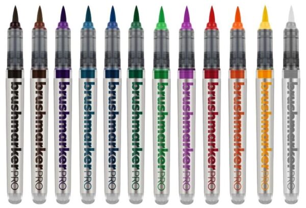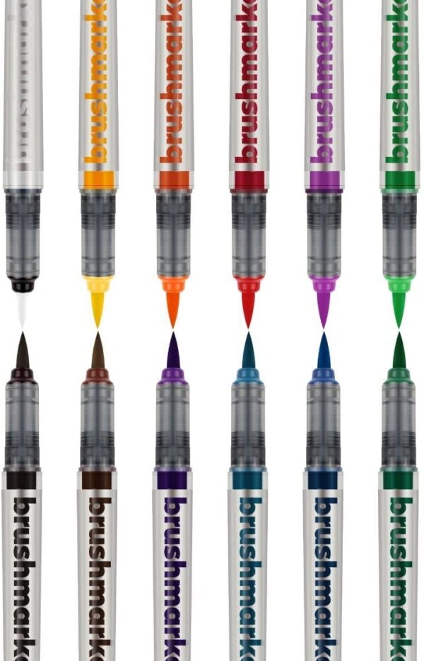 - Filled with intensely-colored dye-based ink, these new brush markers leave extra “juicy” marks for vibrant lettering, drawing, or coloring. Liquid ink technology keeps the flow of ink nicely controlled and efficiently allows you to color until the last drop of ink is used up.