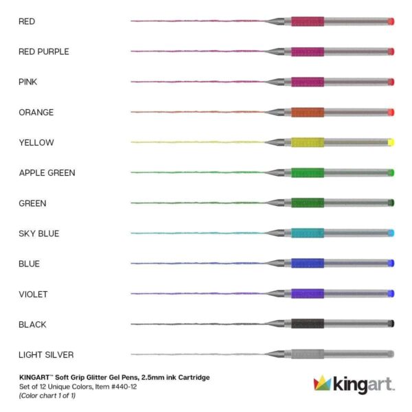 KINGART Glitter Gel Pens, Soft Grip, 2.5 mm, 12 Count