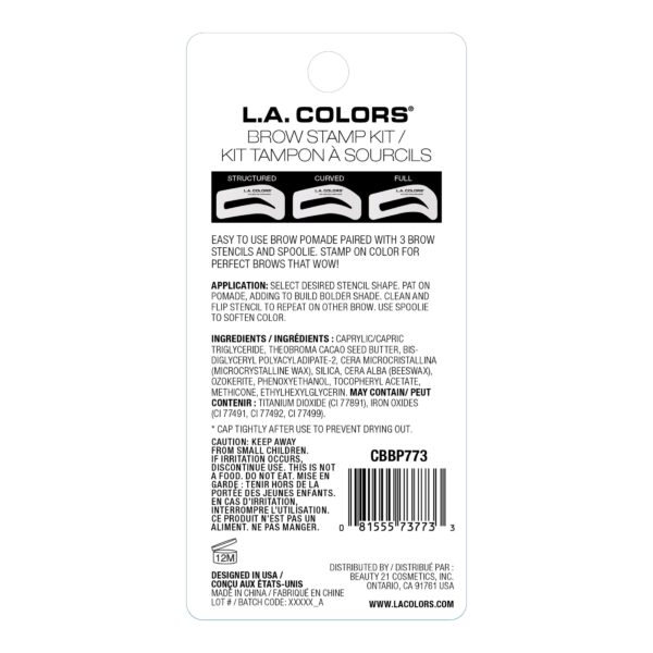 Achieving perfectly shaped and tinted brows has never been easier with the long-wearing L.A. Colors Brow Stencil Kit. This kit includes three versatile stencils that help you create natural-looking brows effortlessly. With this kit, you can easily apply sheer to full-coverage color that accurately defines your brows and provides a complementary finish. The stencils come in different shapes and sizes, allowing you to choose your preferred brow structure, whether structured, curved, or fully arched. This travel-friendly kit also comes with a spoolie that you can use to brush, blend, tame, and groom your brows to perfection after stamping. You can achieve flawless, gorgeous results in seconds with no mess and no hassle. Transform your look with this must-have beauty essential and discover a new level of confidence with this convenient beauty tool designed to help you achieve perfectly shaped eyebrows with minimal effort. This brow stamp kit has a well-defined eyebrow arch, allowing users to transfer the desired brow shape onto their skin effortlessly