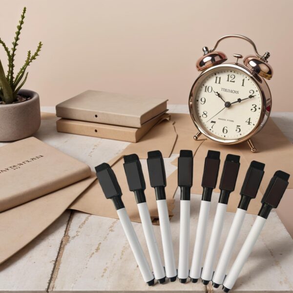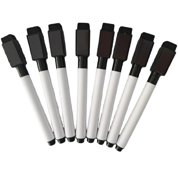 - Value Package: This set contains 8 pieces of black magnetic dry erase thin markers