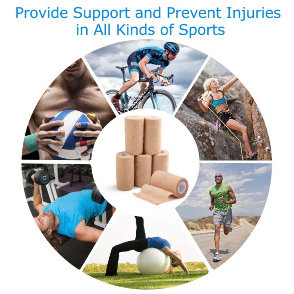 LotFancy 6 Pack Self Adhesive Bandage Wraps, 4 in x 5 Yards Medical Tape