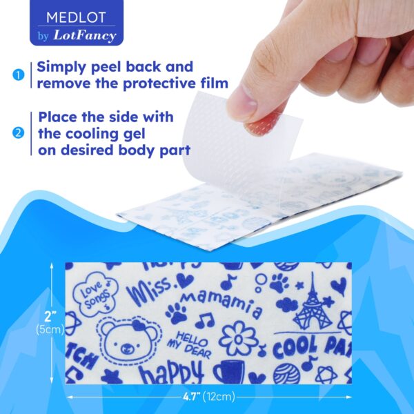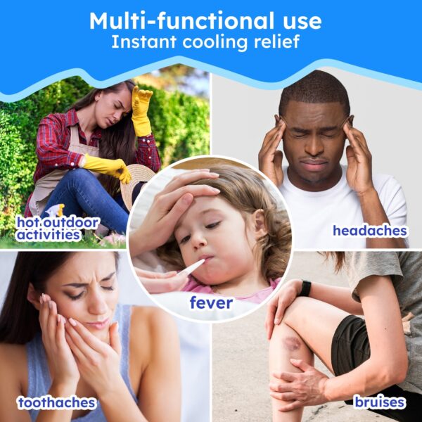 LotFancy cool patches work great for little ones suffering from a fever. Our cold pads bring quick relief to ease the discomforts of headaches, fevers, warm nights, tired and achy muscles. Pads can be cut to smaller sizes if necessary. Cool gel pads could also be used for bruises, sprains, migraines, hot flashes, lingering effects of a hangover. Our cool patches attach lightly but adequately on the skin and will remain in place during sleep or light activity.