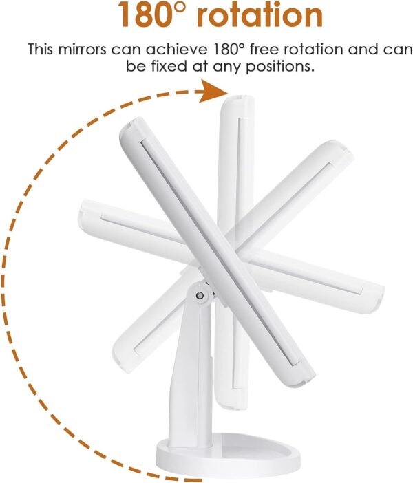 - Adjustable degree rotation & touch control; adjust the mirror as per the suitable viewing angle you wish, easy and convenient touch switch, easily control the LED makeup mirror when doing makeup