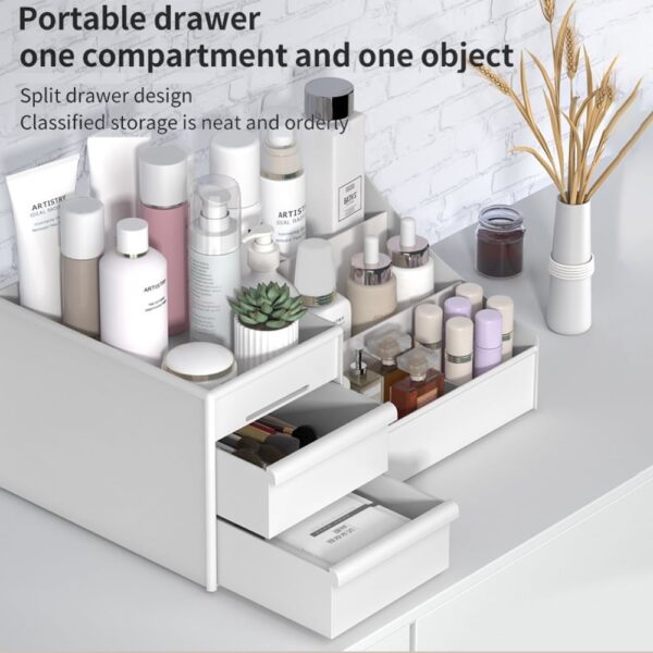 - 【Drawer Handle & High-end Texture】— Cosmetic Storage Box adopt high grade mould, receive box smooth without burr, firm and durable and convenient for beautiful and convenient.Makeup shelf help find cosmetics and Hair accessories easily.