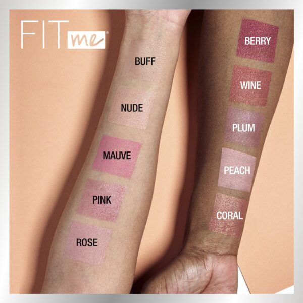 Maybelline Fit Me Blush, Rose, Enhance skin tone with a natural blush. True-to-tone color blends seamlessly. Now Fit happens with a flattering natural yet noticeable blush. Evenly Packaging may vary, what you receive may not be what is reflected on site. Instructions: Sweep blush onto the apples of the cheeks from the cheekbones to temples. Long-lasting blush ideal for dark skin, pale skin, and every tone in between. Dermatologist tested. Allergy tested. Non-comedogenic.