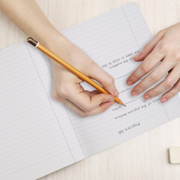 - Includes 100 double-sided, wide ruled sheets