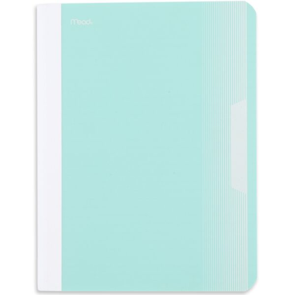 This Mead composition book has 80 double-sided, college ruled sheets paper, which gives you plenty of writing space. The college ruled sheets are securely sewn in. Sheets measure 7 1/2″ x 9 3/4″. The one-piece plastic cover helps protect your notes. Plastic cover has a writable label so you can assign it to a specific subject. The one-piece plastic cover helps protect notes all year long. Cover lies flat when open for easy notetaking. The smooth wireless sewn binding won’t snag on your clothing or backpack. Available in Pastel Green.