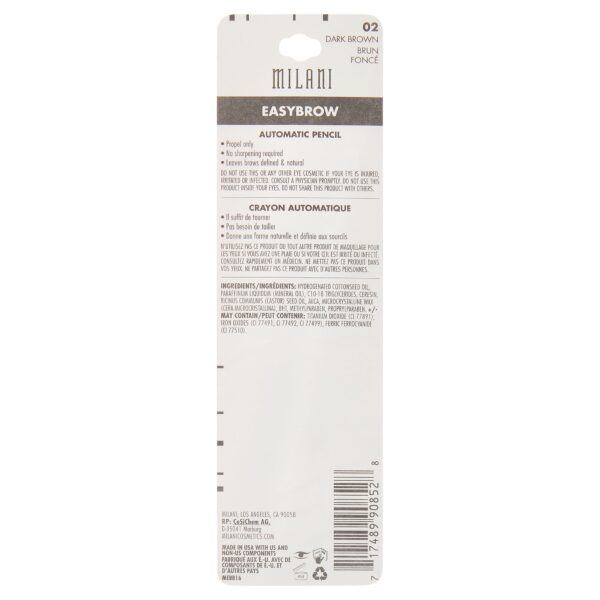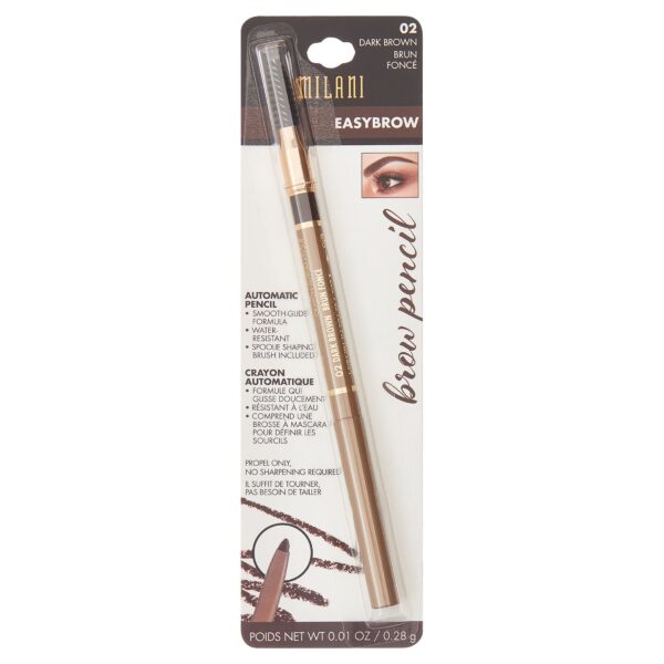 Looking for a bold brow? We’ll show you how! Milani Easybrow Automatic Pencil is your secret weapon for captivatingly full and even brows. Looking for the best eyebrow pencil for the evening, every day, and everything else? Look no further. This powerful eyebrow pencil has a smooth-glide, water-resistant formula that fills even the smallest gaps in your brows to give natural fullness and authentic volume. With the eyebrow spoolie brush on the opposite end of the pencil, you can blend beautifully and groom glamorously for stylish, professional results. Choose from two wearable shades or mix to find your ultimate match. Line, fill, color, and shape your way to fringe on fleek status.