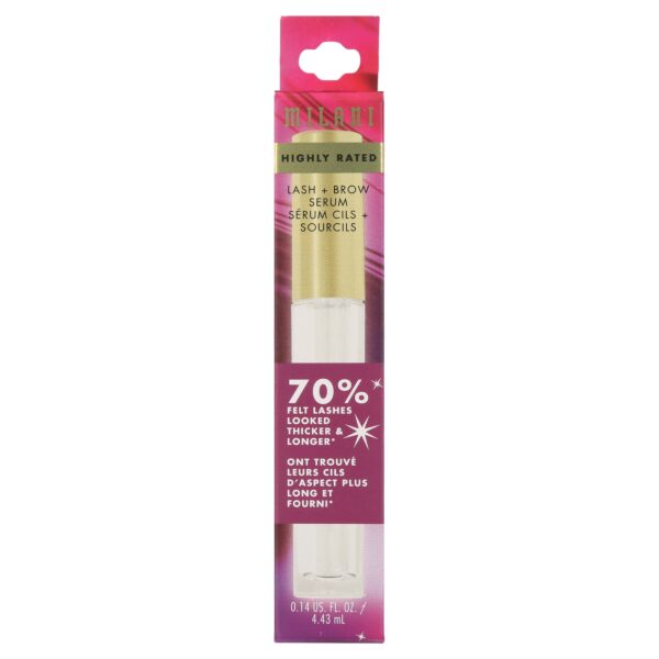Out of this world lashes & brows? Yes, please. Milani Highly Rated Lash + Brow Serum is a nightly serum designed to condition and strengthen hair for healthier-looking lashes and brows. When ed continuously to stain results, it helps improve the appearance of lash and brow thickness for longer, fuller-looking lashes and brows over time. The precise brush allows for targeted lash and brow application.