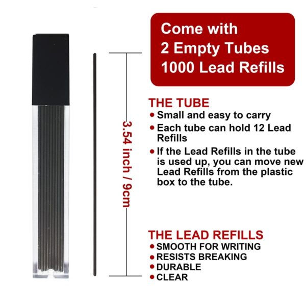 - 0.7mm Mechanical Pencil Lead Refill. Fits All 0.7 Automatic Pencil.,1000 Mechanical Pencil Lead In One Plastic Box. Come With 2 Easy Carry Tubes. So Many Leads Can Be Used Up To One Year., Made of Premium Resin.