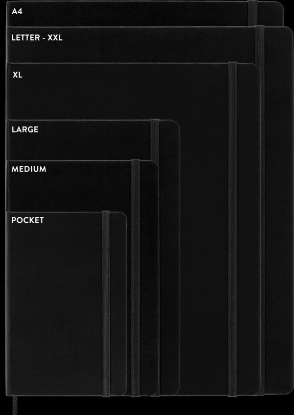 - The Moleskine Classic notebook is a great place to take notes and stay organized. Hard cover made of sturdy cardboard allows you to write without a desk surface. Elastic closure across entire length keeps pages in safe.