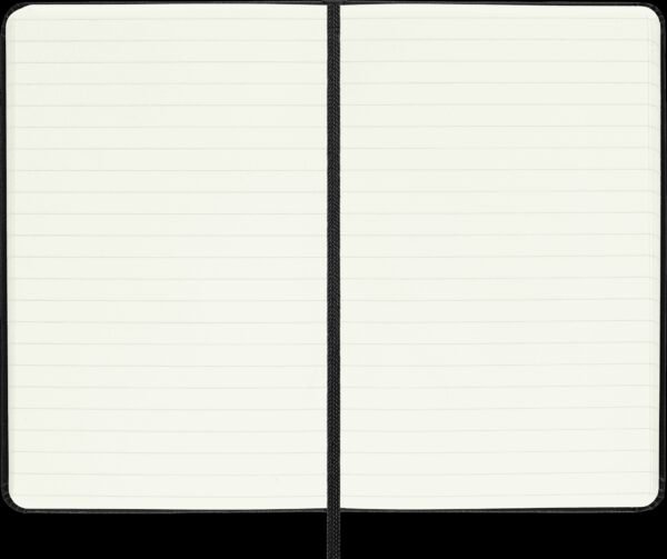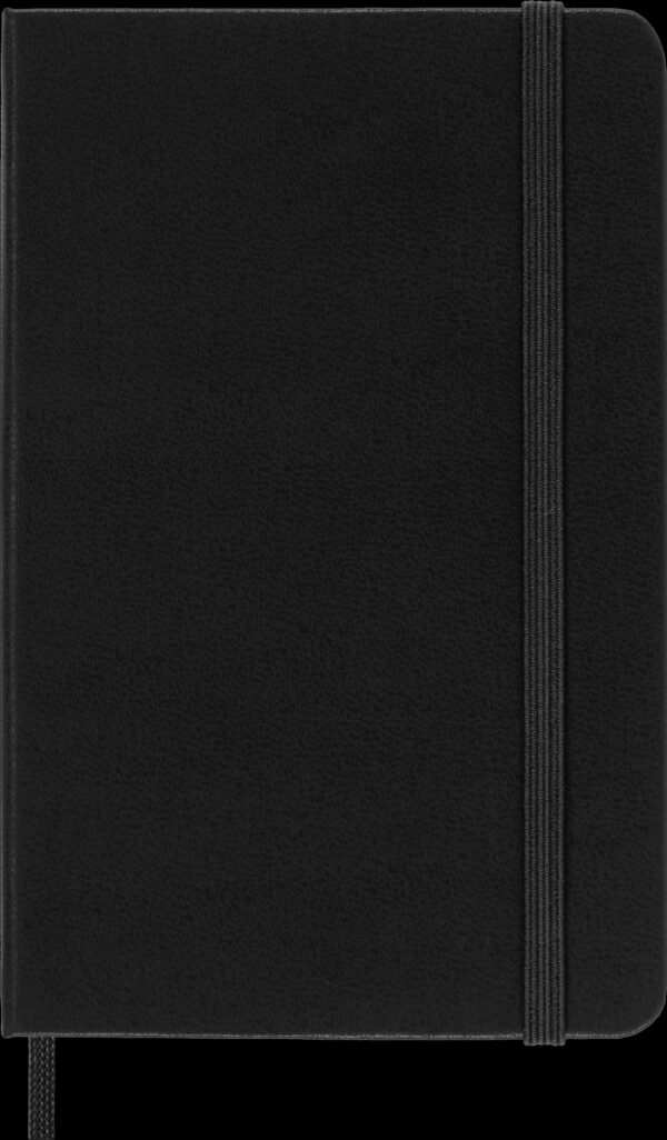 - Moleskine classic notebook with a hardcover design in iconic black