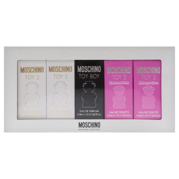 Design house: Moschino. Scent name: Mini Set. Gender: Ladies. Category: Perfume. SubType: Gift Set. SKU: MOS699141. Barcode: 8011003869541. 5 PCS MINI SET: TOY 2 BUBBLE GUM 5 ML EDP + TOY 2 BUBBLE GUM 5 ML EDP + TOY BOY 5 ML EDP + TOY 2 5 ML EDP + TOY 2 5 ML EDP. Moschino Ladies Mini Set Gift Set Fragrances 8011003869541.