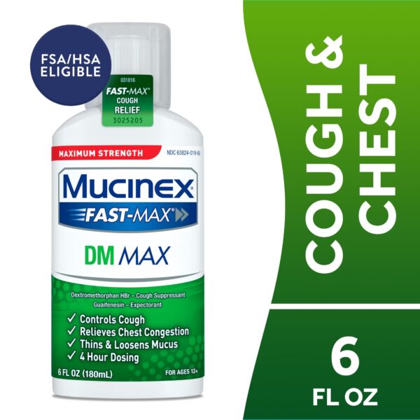 Mucinex Fast-Max DM Max Strength Expectorant & Cough Medicine, Excess Mucus Relief, FSA/HSA, 6 fl oz