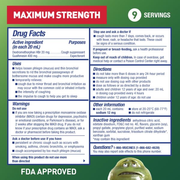 - EXTENDED RELEASE GUAIFENESIN: Experience 4hr relief with Mucinex DM Max extended-release 400mg guaifenesin and 20mg dextromethorphan HBr in an easier to swallow liquid format