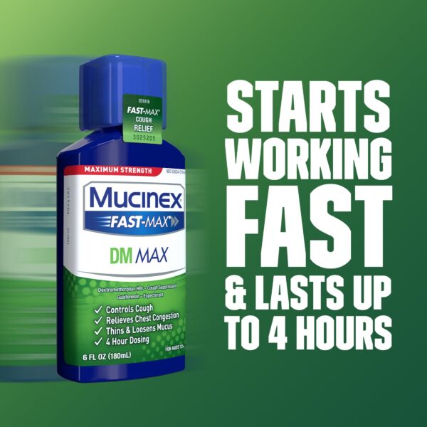 - EXCESS MUCUS RELIEF: Maxium strength multi-symptom relief; Mucinex DM Max is clinically proven to last up to 4hrs and provide relief for chest congestion and make coughs more productive