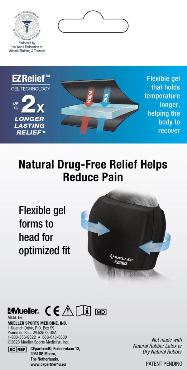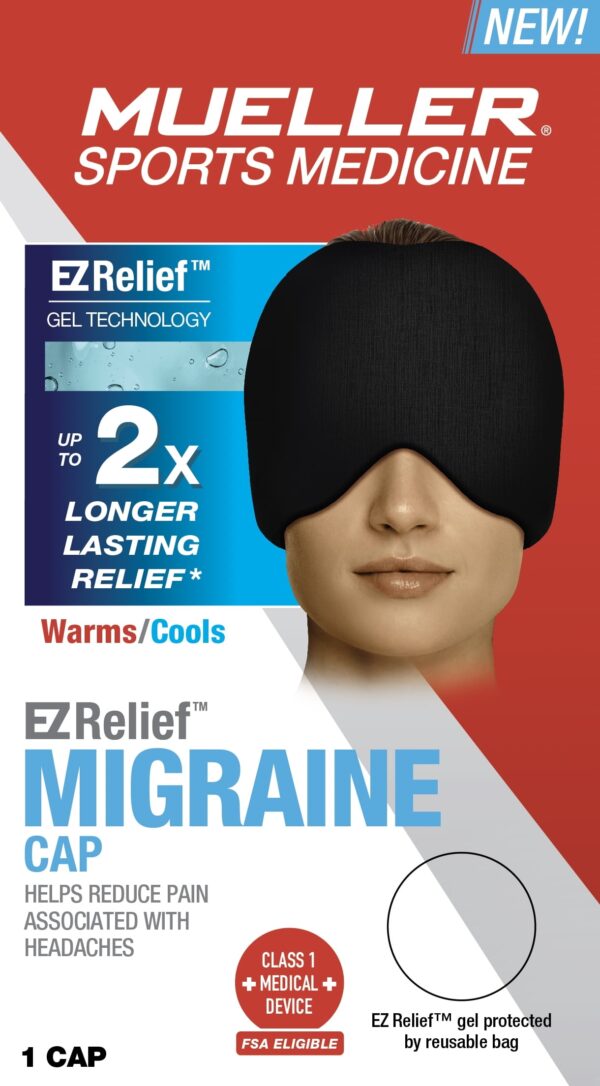The Mueller Sports Medicine EZ Relief™ Migraine Cap utilizes advanced temperature-holding gel technology to heat and cool the head, helping to reduce pain associated with headaches, migraines, sinus & head tension, and stress. Manufactured with a thicker gel composition, our EZ Relief™ Migraine Cap holds temperature longer for up to 2X longer lasting relief. With flexible gel that contours to the head & 360° all-around relief, the EZ Relief™ Migraine Cap can be worn in multiple ways for optimal, desired relief. Proven to be light reducing & noise reducing, the Mueller EZ Relief™ Migraine Cap provides soothing relief throughout the day and can even be worn while resting. It cools and warms with ease – simply slide it in the fridge or freezer for cold therapy & heat it up in the microwave for hot therapy. A reusable bag is included to keep the gel cap safe and clean for extended, all-day treatment. Designed for ease-of-use and instant tension relief, find quality and performance with the Mueller Sports Medicine EZ Relief™ Migraine Cap.