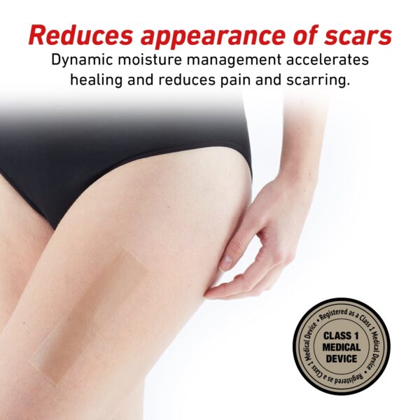 - moisture management accelerates scar healing, reduces pain and scarring.