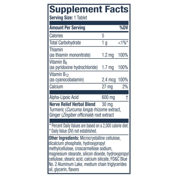 Nervive Nerve Relief, Alpha Lipoic Acid, Vitamin B12, B6, B1, Over-the-Counter Medicine, 30 Tablets