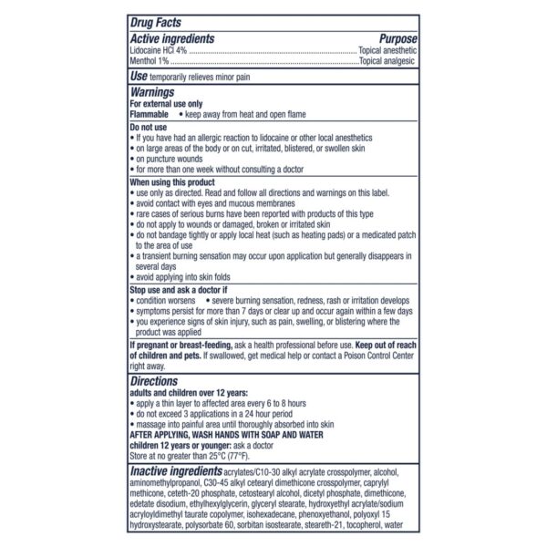 - MAXIMUM STRENGTH RELIEF: Maximum levels of Lidocaine HCL 4% and Menthol 1% work to block nerve pain signals to relieve pain