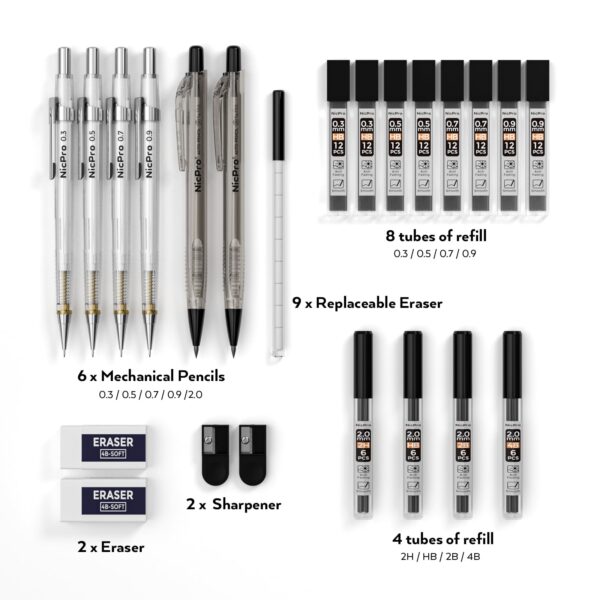 Nicpro MECHANICAL PENCIL SET – Ideal for artists, professionals, teachers and students alike