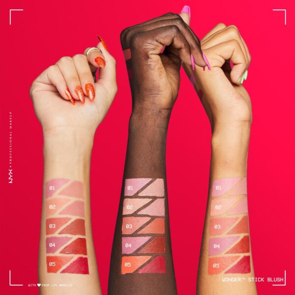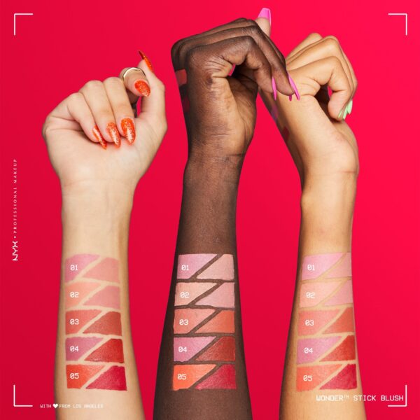 Introducing NYX Professional Makeup Wonder Stick Blush, the ultra creamy blush shaping duo we’ve all been waiting for. The 1st dual-ended cream blush contour stick that melts into skin like a wonder. Color, shape & blend with three flushed shade pairings that are vegan and cruelty free. Formulated with hyaluronic acid to hydrate & improve the appearance of your skin!