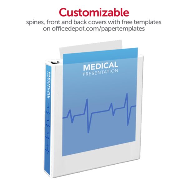 Store finished assignments or notes for projects in this [IN]PLACE heavy-duty view binder. Generous D-rings hold punched papers in place and offer easy turning, and inside pockets make it easy to organize loose sheets and other documents. A clear spine label lets you personalize this binder for project or class. With a durable design, this [IN]PLACE heavy-duty binder withstands frequent use. Organize your papers in one place to help save time when they are needed. Nonstick polypropylene cover resists ink transfer. Pages lie flat with back-mounted rings. Slanted D-shaped rings can hold more pages. Heavy-duty binder construction offers lasting durability. Organize and secure loose pages in the 2 interior opaque pockets. Spine label holder lets you personalize this heavy-duty binder. 2″ binder holds 565 sheets. Contains Recycled Content – See Specs for Details.