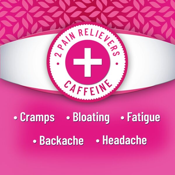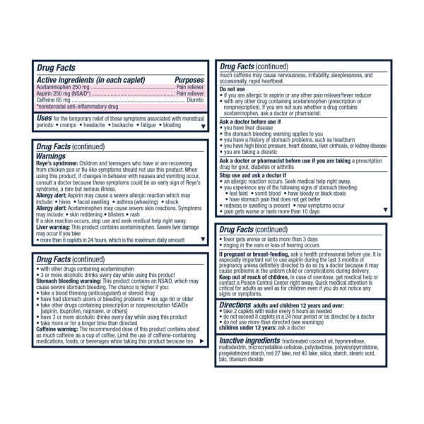 Pamprin Maximum Strength Menstrual Pain Relief provides complete relief of cramps, fatigue, headache, and backache. Contains Acetaminophen, Aspirin, and Caffeine. 24 Caplets