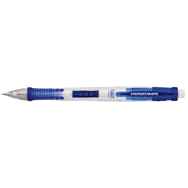 With the feel of a pen and the look and performance of a pencil, the Paper Mate Clearpoint Mechanical Pencil is your clear choice. The comfortable grip and the wider fit and feel of each mechanical pencil causes less stress and strain on your hand while the constant supply of lead gives you uninterrupted performance. The mechanical pencils also feature a Jumbo twist-up eraser that makes quick work of mistakes and colorful blue barrel designs.