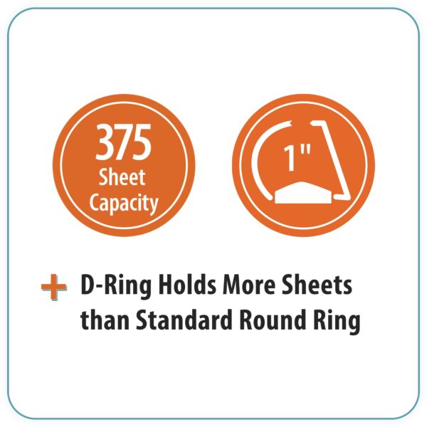 - 3-ring binder with 1.5″ rings and 375 sheet capacity.