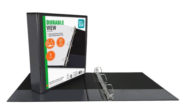 When it comes to organization, our Pen & Gear 3-Ring Durable View Binder offers so much more. For starters, it features a lightweight multi-layer construction, which makes it easy to carry, and includes 1.5-inch slanted D-rings, as opposed to standard round rings, so it can hold more paper; 375 sheets to be exact. Plus, it comes complete with two handy interior pockets for extra storage, see-through front and back cover pockets, and a side pocket that makes labeling and decoration a snap. Our Pen & Gear 3-Ring Durable View Binder is the perfect choice for document organization at home, work, or for school projects.