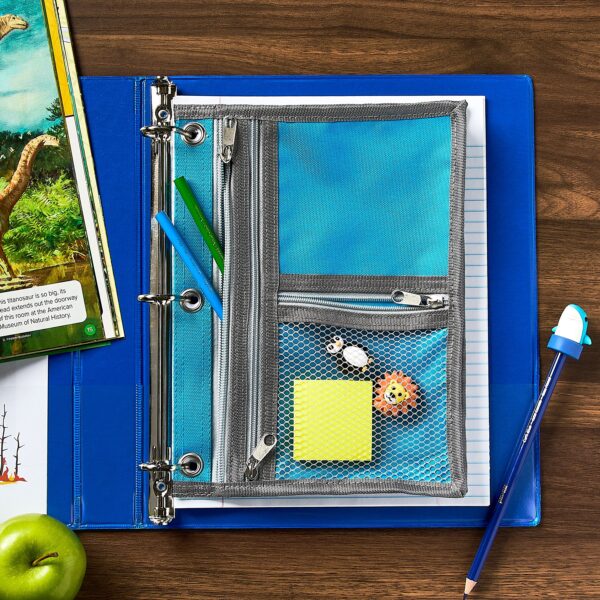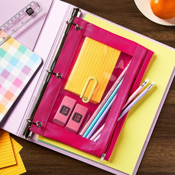 School is scheduled to start in 1 day and even though my kids are doing virtual learning they still require school supplies. I bought all new pencils and erasers but they would not fit in the case I originally had. I am keeping them in this very nice binder pouch. All my pencils with erasers fit nicely in it. Has a see through window and a zipper. Also has 3 holes on the left side to put in a binder. The fabric is very durable. I can see this lasting for a good while. Very happy with this.
