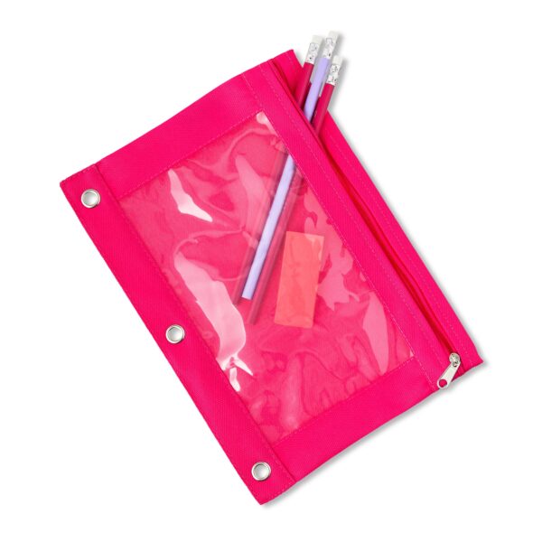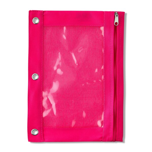 Keep school supplies and other accessories together with the polyester Binder Pouch. This pouch has a vinyl clear window that makes it easy to see what you have inside has a to in one place and safe. It also features three binder holes for easy and secure attachment to folders and binders. Use to store colored pencils, binder clips, erasers, and other school essentials. It’s available in a variety of colors, so you can choose one that best fits your personal style. Whether you’re at school or heading on a field trip, all of your must-have accessories will be safely in one location. Get organized with the polyester 1 zipper pocket binder pouch.