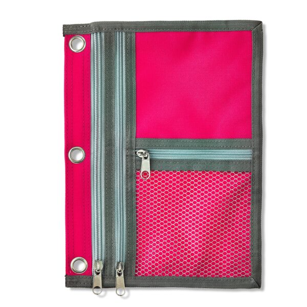 - This pouch features three convenient pockets of different sizes and has a zipper along the sides that lets you expand the binder pouch to fit more supplies