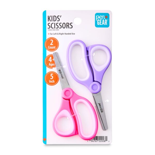 - Pen+Gear 5-inch Blunt-tip Kids Scissors, Ages 4-7, School Supplies, 2-Pack, Purple and Pink