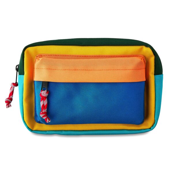 [This review was collected as part of a promotion.] I love the bold colors and that there are two compartments. It’s a sturdy fabric and the stitching looks well done, too. The colors are neutral and solid, so it can be for a boy or a girl. This is a great size as there’s enough room for an assortment of things, and would even serve as a cute traveling makeup bag too!