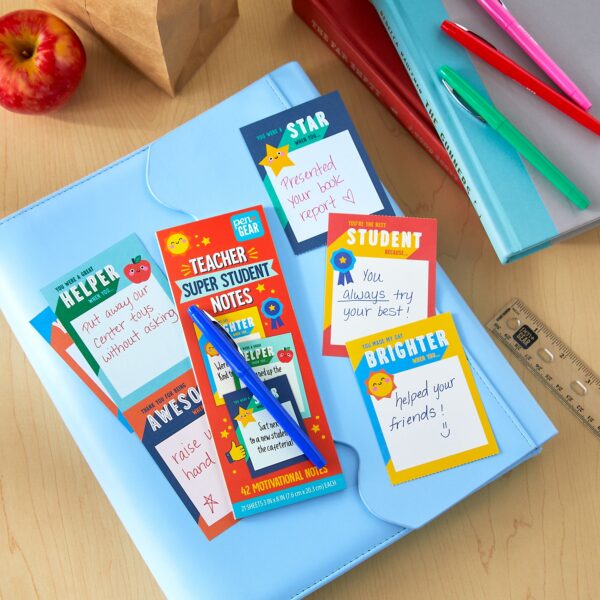 Celebrate student wins and good behavior with Pen+Gear Teacher Super Student Notes. This pack has 21 bright sheets and 42 fun notes. Use them to praise kids for being kind, helpful, or doing great work. Each note has a happy look and kind words like “You were a star when…” or “You made my day brighter.” These notes do not have any holes, making them easy to hand out, tuck into folders, or display as-is. They help teachers say “good job” in a fun, easy way. Don’t forget other Pen+Gear items like pens, markers, sticky notes, and more for your desk or classroom. These notes help build confidence and a happy class vibe.