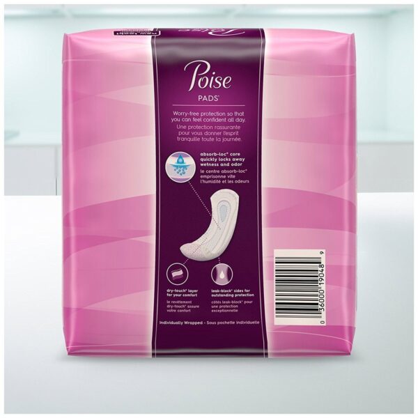 - Odor Control: always wear Poise discreetly and confidently knowing it instantly locks away wetness and odor.
