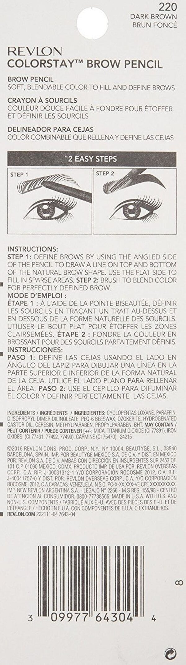 Revlon ColorStay Brow Pencil, Waterproof, 220 – Dark Brown, .012 oz