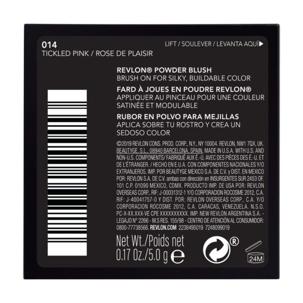 Blush, your way, with powdery soft, buildable color. Revlon Powder Blush is microfine, powdery soft, and buildable, in 8 color true shades to suit a variety of skin tones. Color-true pigments create a luscious, defined look that lasts all day, with buildable intensity so your blush looks exactly how you want it.|Shades: • Oh Baby Pink (001) – Pink • Mauvelous (003) – Mauve • Rosy Glow (004) – Pink • Naughty Nude (006) – Nude • Tickled Pink (014) – Pink