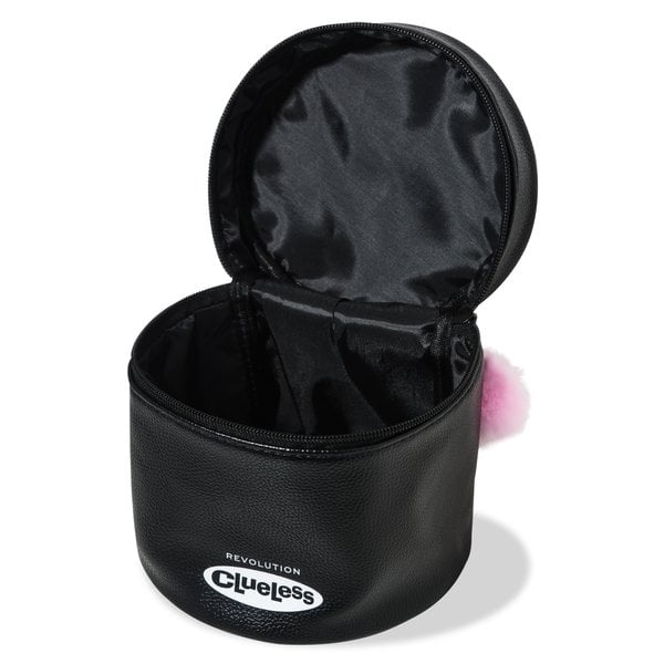 “Ugh, as if! But seriously, I actually have a way normal life for a teenage girl. I get up, brush my teeth, and… put on my Revolution x Clueless 30th anniversary collection – let’s do a makeover! Got your Clueless essentials? Time to transport them in style with this cosmetics bag. The sleek, black cylindrical design comes with an easy to open top and handle, and is finished with an iconic pink pom pom. Dims: 15.5cm W x 18.5cm H x 3cm D (approx.) Cruelty-free and vegan.”