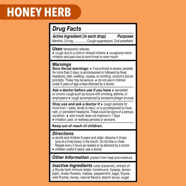 - Cough suppressant drops are made with 2.0 mg of natural menthol and fair trade honey for great tasting relief that the whole family will enjoy