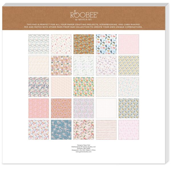 Enter a world where creativity knows no bounds, nurtured by the diverse and detailed designs of the Garden Paper Pad. Each pattern, from the delicate interplay of florals and butterflies to the carefully curated coordinating designs, has been chosen to inspire and elevate your crafting endeavors. Ideal for scrapbookers, card makers, and DIY crafters alike, this collection not only enhances your projects but also enriches the experience of creation. The joy found in the simple act of crafting is magnified through the beauty and quality of these materials, making every project a treasure. Whether you’re commemorating moments, expressing heartfelt sentiments, or simply indulging in the pleasure of crafting, the Garden Paper Pad by Roobee by Mara-Mi is your companion on this creative journey. Measuring 12″ x 12″, our Garden Paper Pad provides ample canvas for your creativity. Whether you’re designing full scrapbook layouts, customizing cards, or engaging in any DIY crafting venture, these generously sized sheets offer limitless possibilities to express your creativity. With a substantial weight of 24 lb/110 GSM, each of the 50 sheets, in 25 designs in this pad promises durability and a professional finish. The premium quality not only supports a variety of mediums but also ensures that your projects endure the test of time, preserving your memories as vividly as the day they were crafted.