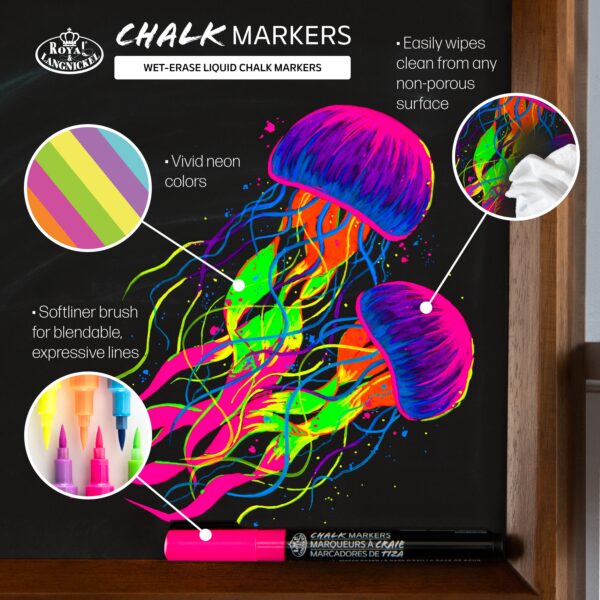 Royal & Langnickel – 6pc Artist Chalk Markers with Brush Tips, Neon Colors