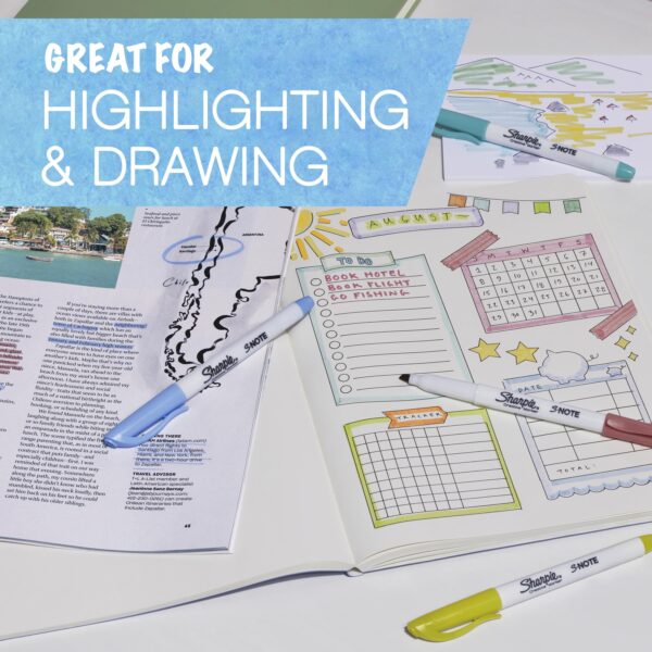 Ignite your imagination with Sharpie S-Note creative markers. Versatile and fun, they’re both a marker and a highlighter, adding a splash of color to note-taking, underlining, highlighting, drawing, and more. Versatility is the name of the game with a chisel tip that lets you quickly switch between precise and broad lines. Plus, the no-bleed ink keeps your work looking clean. Unleash your creativity with Sharpie S-Note!